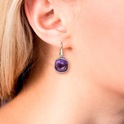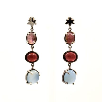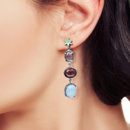 Aretes Colgante perla en gota con perla amatista y rubí plata