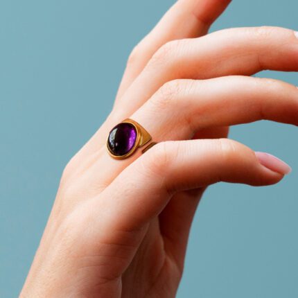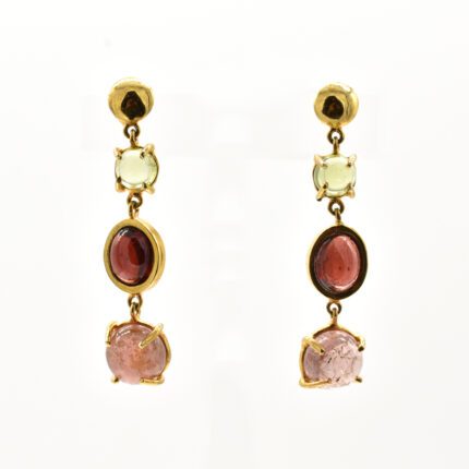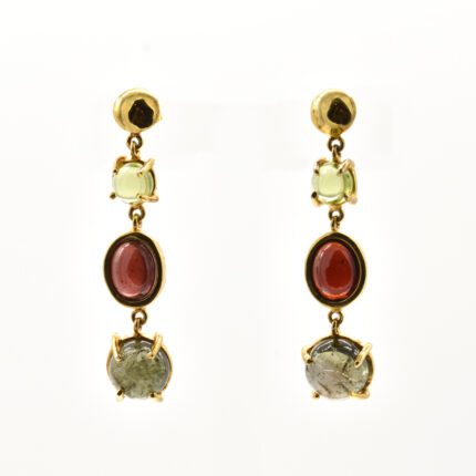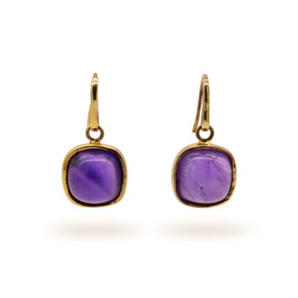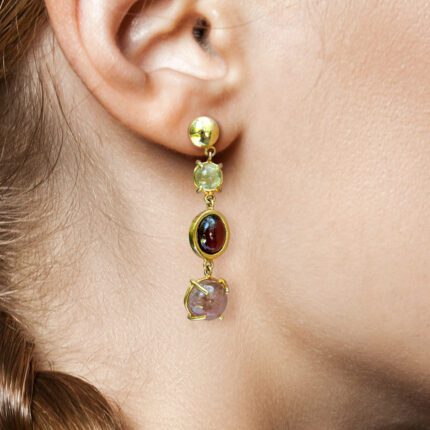 Aretes Colgante perla redonda con rubi y amatista hexagonal oro